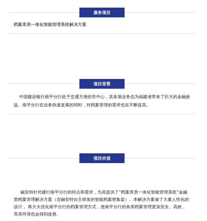 中國建設(shè)銀行南平分行處于交通方便的市中心,其各項業(yè)務(wù)也為福建省帶來了巨大的金融效益。南平分行在業(yè)務(wù)快速發(fā)展的同時,對檔案管理的需求也在不斷提高。及尚針對建行南平分行的特點和需求,為其提供了“檔案庫房一體化智能管理系統(tǒng)”。