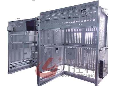 本系統(tǒng)是由鋼結(jié)構(gòu)框架和木板搭建而成的二層建筑平臺(tái),分別模擬一棟建筑的首層機(jī)房、二層住戶、首層樓道、二層樓道、垂直豎井和建筑周邊。房間提供正反側(cè)墻和頂墻的安裝范圍,同時(shí)還提供房間大門,可在上面安裝電插鎖、電磁鎖、門磁和閉門器等器件,并具有安裝模擬電梯功能。